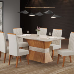 Juego De Comedor 6 Sillas Pino Tratado Blanco Nogal Mexicana