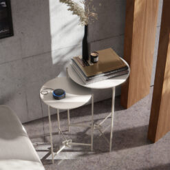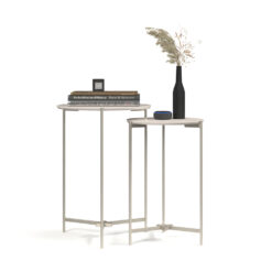 Conjunto Mesas Laterales Redondas Patas De Hierro Tapa Mdp Blanco