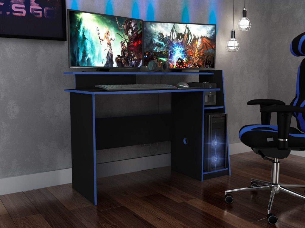 Escritorio Gamer Laptop Estantes Oficina Azul