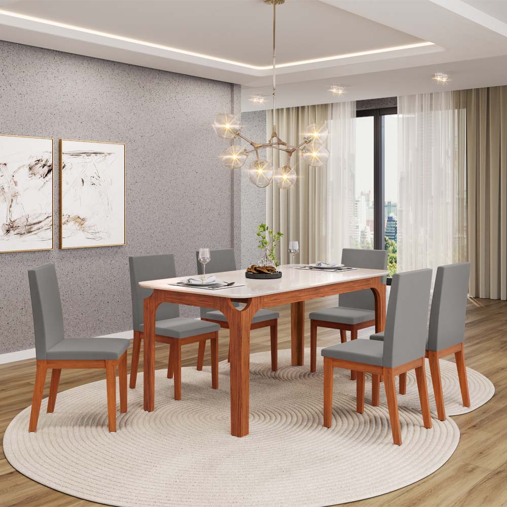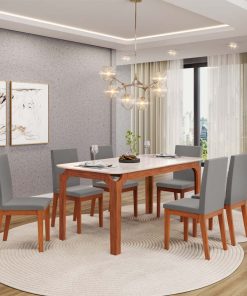 Juego De Comedor Mesa Rectangular 6 Sillas Tapizadas Mdp