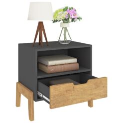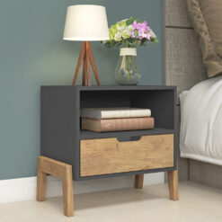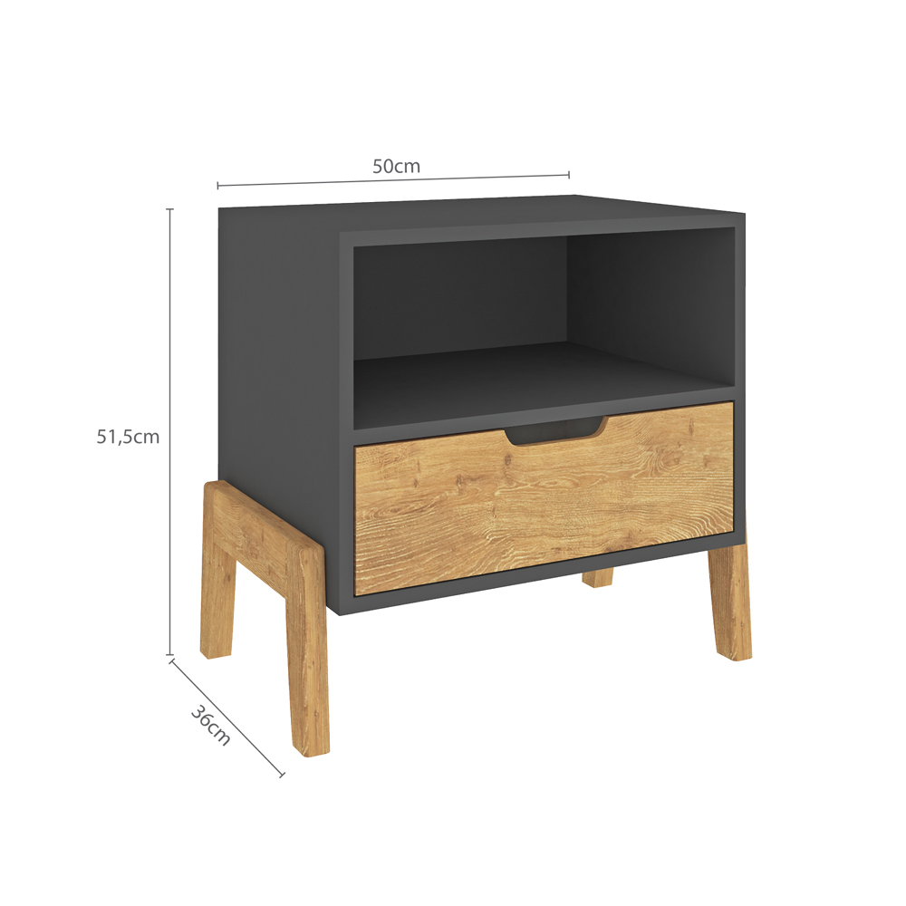 Mesa De Luz 1 Cajon Frente De Madera Y Patas Linea Retro Grafito