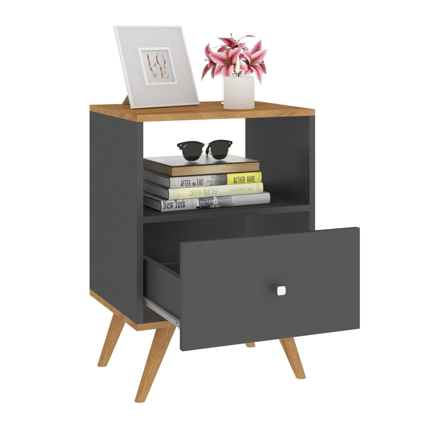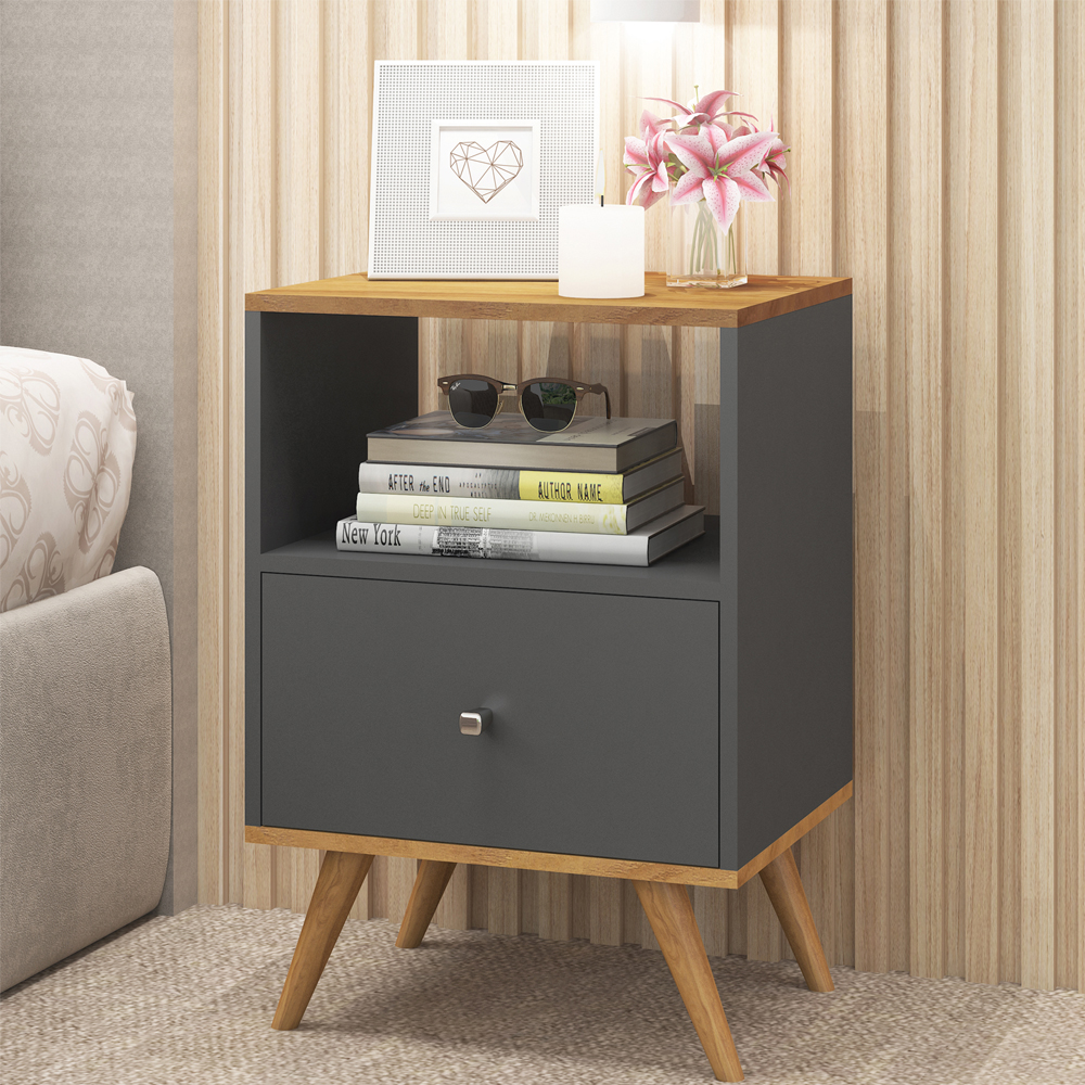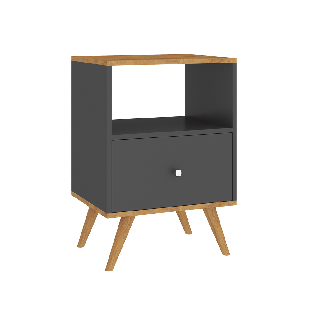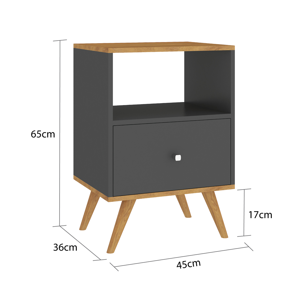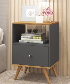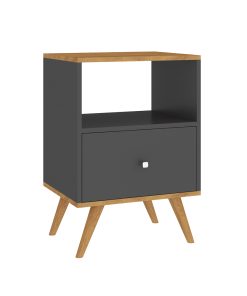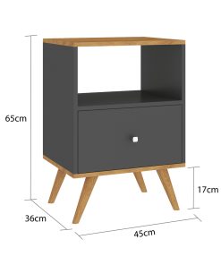 MESA DE LUZ 1 CAJON, RIELES METALICOS CON PATAS DE MADERA