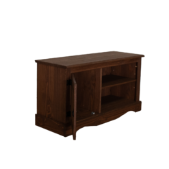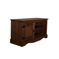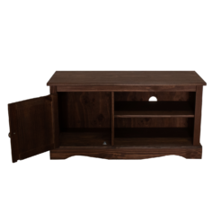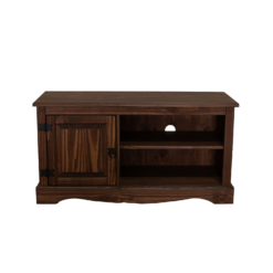 Rack para tv de 1 puerta, 2 estantes, material madera maciza, color nogal oscuro.
