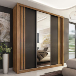 Ropero 3 Puertas Corredizas 2 Cajones Espejo Central Moderno